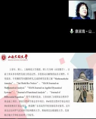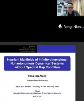4月14日上午8点30分,上海师范大学王荣年教授应邀作题为“Invariant Manifolds of Infinite-dimensional Nonautonomous Dynamical Systems without