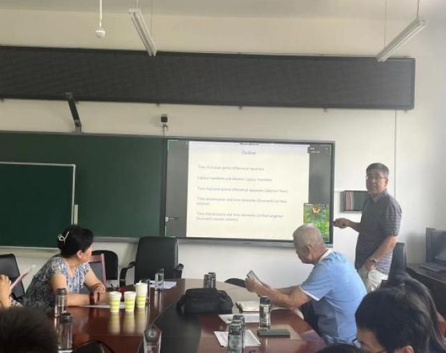 7月21日下午3点,英国切斯特大学数学系闫玉斌教授应邀作题为“Laplace transform method for time fractional PDEs with nonsmooth data”的学术讲座。会议由康淑瑰教授主持,应用数学研究所部分教师听取了报告。