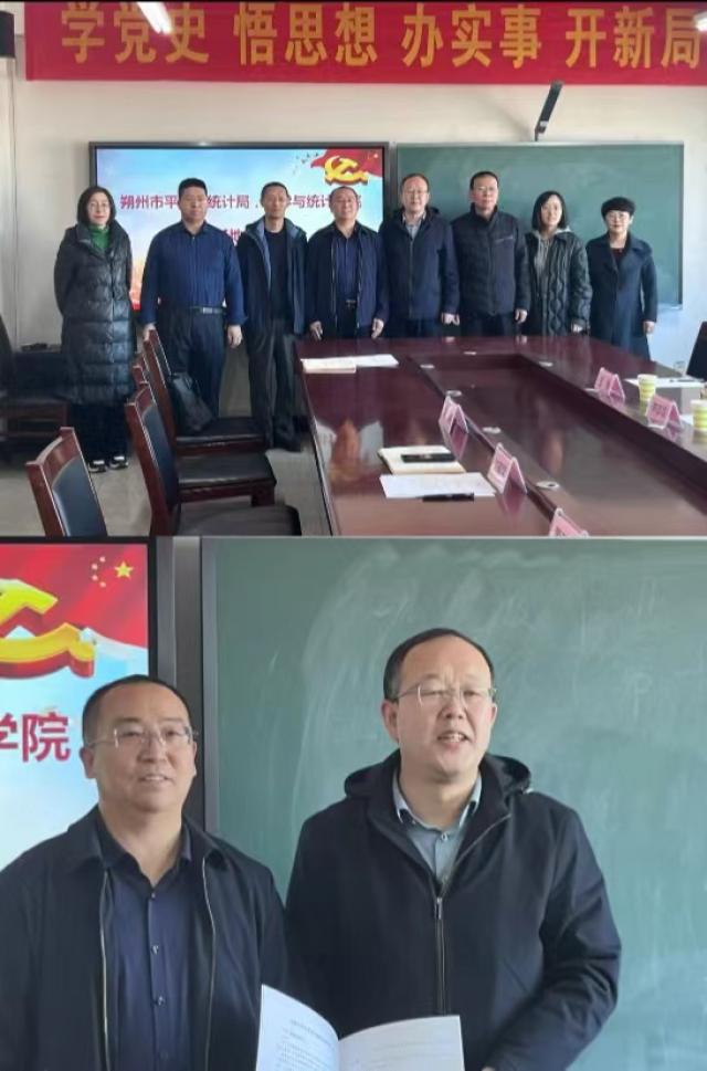 为推进统计专业人才培养,搭建更好的学生实习平台,加强学院服务地方的能力,数学与统计学院于1月7日上午10:00在行知楼808教室开展了“朔州市平鲁区统计局和太阳成集团tyc7111实习基地签约仪式”, 平鲁区统计局党组书记、局长梁志强一行五人,学院院长刘有军、党委副书记李磊等五人出席了本次仪式,会议由刘有军主持。