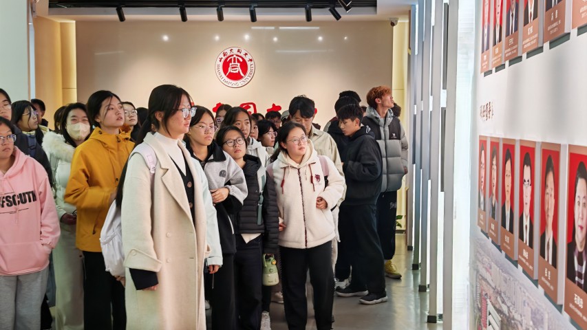 校史馆内,讲解员以时间为线,将静态的历史照片、实物展品转化为动态的校史故事——从建校初期的砥砺开拓,到学科体系的逐步成熟,再到近年教学科研突破、人才培养出彩的亮眼成绩,清晰勾勒出学校发展轨迹。在学院专属展区,同学们驻足端详前辈学者伏案研究的影像,细览统计学科发展历程中的荣誉陈列,不时轻声交流,在回望学科过往中加深对专业的认知与归属感。