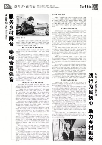 近日,太阳成集团tyc71112025届毕业生郭琪积极响应国家“大学生志愿服务西部计划”,奔赴阳泉市郊区荫营镇人民政府,在基层党建与乡村振兴一线躬身实践、默默奉献的先进事迹,受到《山西青年报》关注报道,生动展现了新时代大同大学学子将个人理想融入国家发展大局的青春担当。