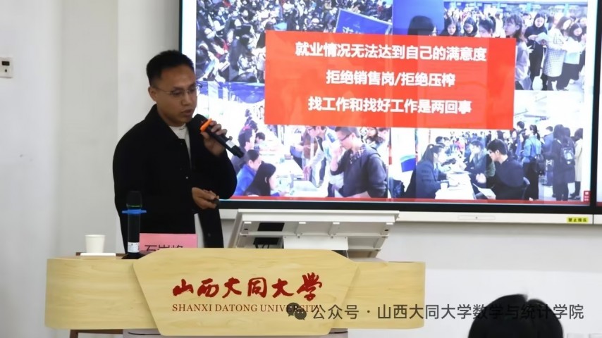 在活动中,石岩峰紧扣学生备考痛点,开展系统性指导。针对考研,他梳理全周期备考规划,突出数学、英语核心地位,明确大三夯实基础、大四主攻真题的备考重点;在院校选择上,分享实用策略,指导大家规避报考风险,优先选择稳妥院校。同时详细解读复试构成、考核要点及初复试占比,帮助学生提前布局。此外,石岩峰还对考公、考编及考研调剂等关键事项进行全面讲解。同学们认真聆听,纷纷表示活动内容务实高效,进一步明晰了备考思路,之后将结合自身情况制定计划,稳步推进升学与就业目标。