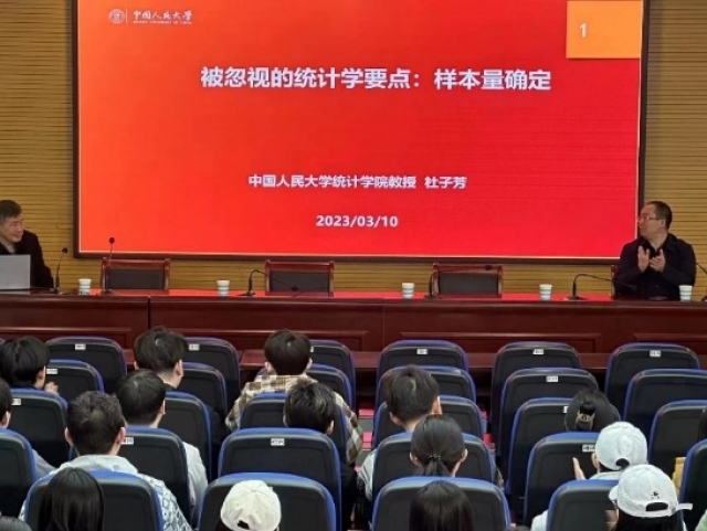 3月10日上午9时,中国人民大学杜子芳教授应邀作了题为“被忽视的统计学要点:样本量的确定”的学术讲座。我院统计系部分师生聆听了此次讲座,报告由刘有军院长主持。